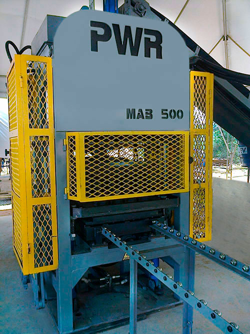 A MAB 500 é uma máquina robusta e compacta para produção de blocos e pisos intertravados. Equipada com uma mesa vibratória sincronizada acionada por motor hidráulico e comando com válvula proporcional para regulagem de rotação. Disponível também na versão semi-automática.