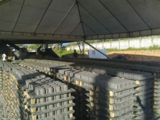 Máquina hidráulica automática para fabricação de blocos e pisos de concreto.